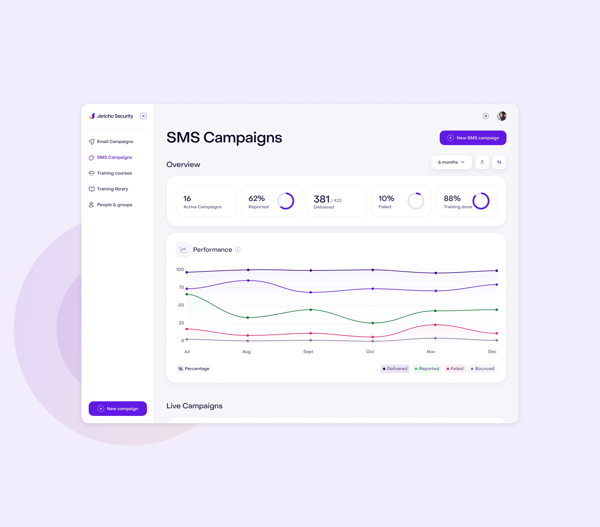 We created a complete AI-powered cybersecurity training platform to test and train employees. We helped Jericho Security during their initial MVP and post-seed phases, providing them with a compelling product that impressed investors.